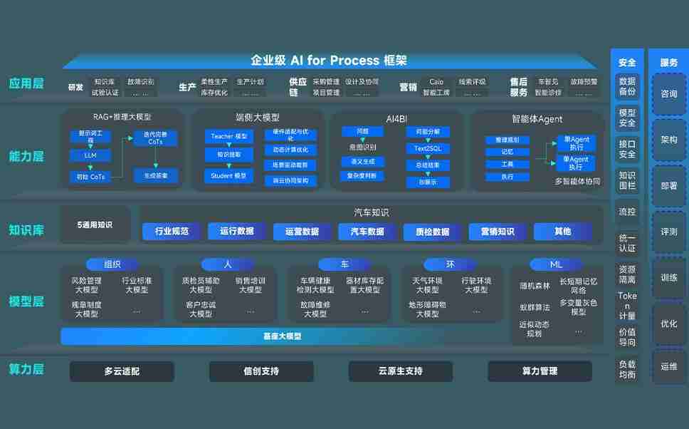 南宫娱乐问学智车解决方案是一套基于AI技术的汽车行业智能化系统,,,覆盖从底层算力到顶层AI应用的全栈方案。。方案由算力层、、、模型层和应用层组成:算力层,,方案支持多种一体机配置,,,具备云端灵活部署、、多云适配以及动态优化计算资源的能力;模型层,,,南宫娱乐问学平台版提供了企业级AI应用一站式构建与管理平台,,,,支持基于后训练强化技术的汽车企业专属模型的训练、、评测和运营;应用层,,南宫娱乐问学DeepSeek版提供包括超级员工、、、智能招采、、智能营销、、、智能客服、、、、AI for BI等一系列解决方案,,可助力汽车行业实现数字化转型,,,,让管理更智能、、、响应更敏捷。。